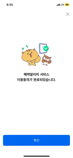 -서비스 이용동의 하면 완료!