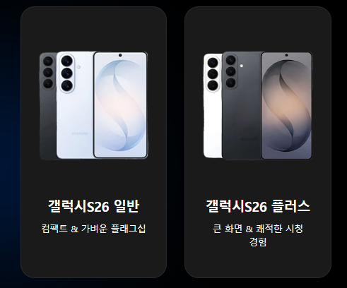 - 갤럭시 S26 플러스: 화면 큰 모델을 선호하는 분들이 많이 찾는 선택지