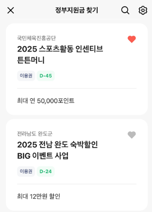 - 관심 있는 정부지원금 항목을 찜 등록