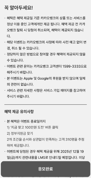 - 그리고 카뱅이 주는 최대 100만 원 지원금 이벤트까지