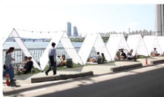 한강을 배경으로 설치된 4가지 테마 힐링존은 다음과 같습니다.