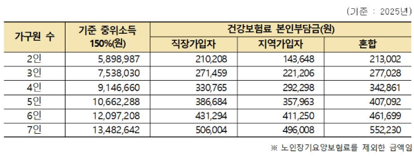 2. 그 외의 경우, 「건강보험료 산정기준표」에 따라 신청일이 속한 달의 직전 월 신청 가구의 건강보험료 본인부담금 부과액을 기준으로 판단