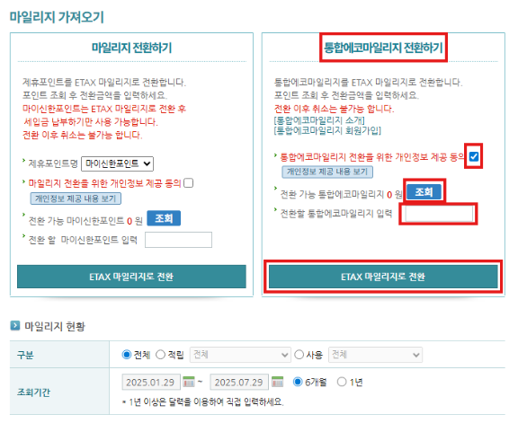에코마일리지 사용방법 – ETAX 전환 및 현금화 절차