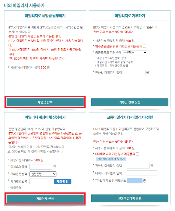 ETAX 마일리지 사용방법 – 지방세 납부 및 계좌이체