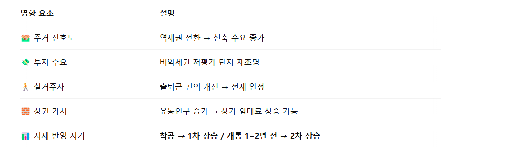 - 신축 아파트와 구축 단지 모두 가치 상승 가능성